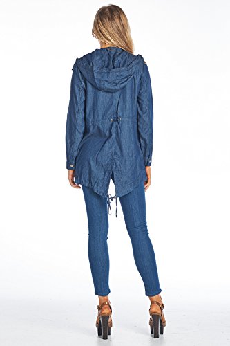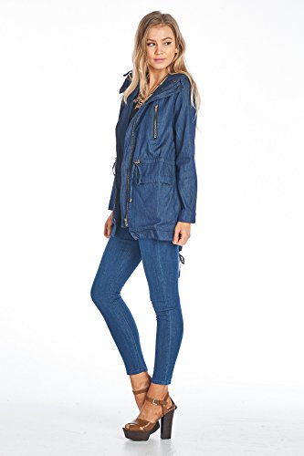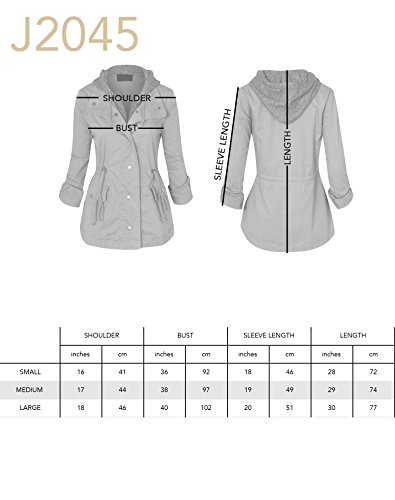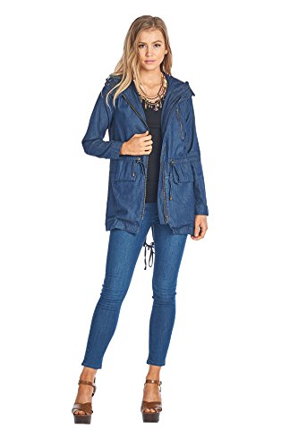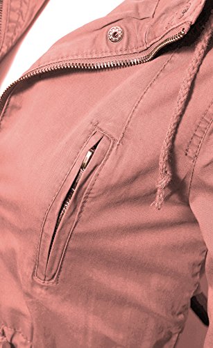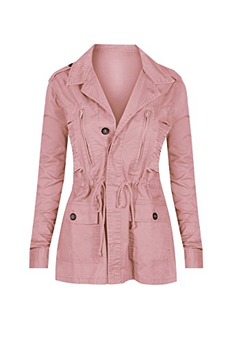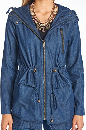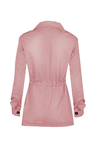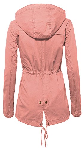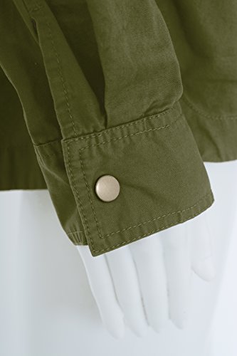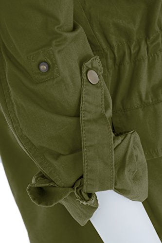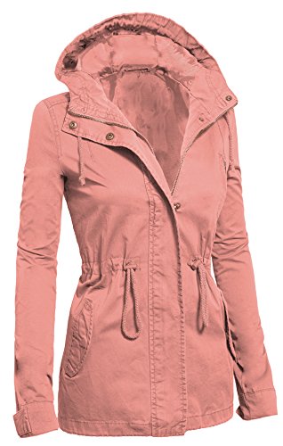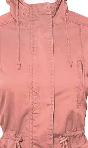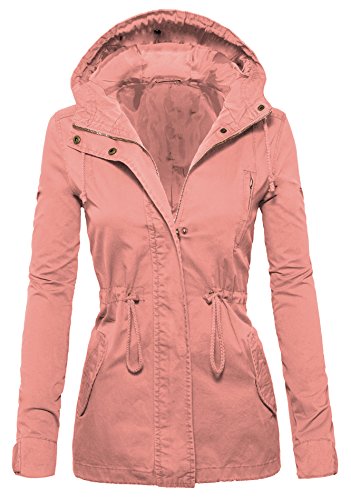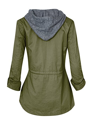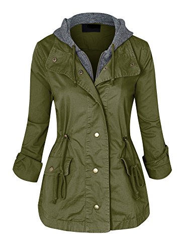 Women's Casual Zip Front Military Anorack Drawstring Waist Jacket with Hood