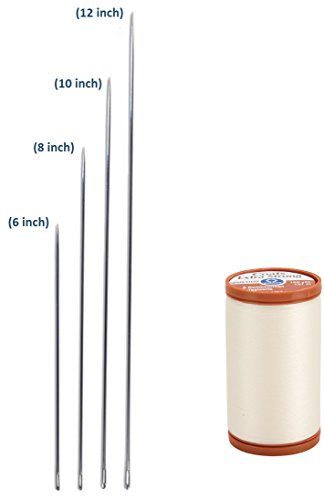 -. Feature : This package includes one Pack of 4 Upholstery Needle and one spool of Natural Extra Strong Upholstery Thread (150-Yard). / Upholstery Needles includes 4 sizes per pack - 6-inch, 8-inch, 10-inch and 12-inch. / Thread is a heavyweight 100% nylon thread for machine and hand sewing indoor and outdoor heavyweight fabrics It is a bonded 3-ply nylon thread that is weather abrasion mildew and UV resistant / They are great for tying sP.R.Ings to webbing, sewing edges, stitching through padding, tufting, attaching buttons and anchoring sP.R.Ing bot to webbing also Great for weaving / Upholstery sewing will be a breeze with these amazing value pack!