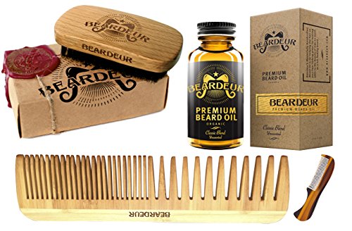 Beard Kit, Boar Bristle Brush, Beard Comb, Small Mustache Comb, Leave In Conditioner Oil for Facial Hair, Grooming Kit