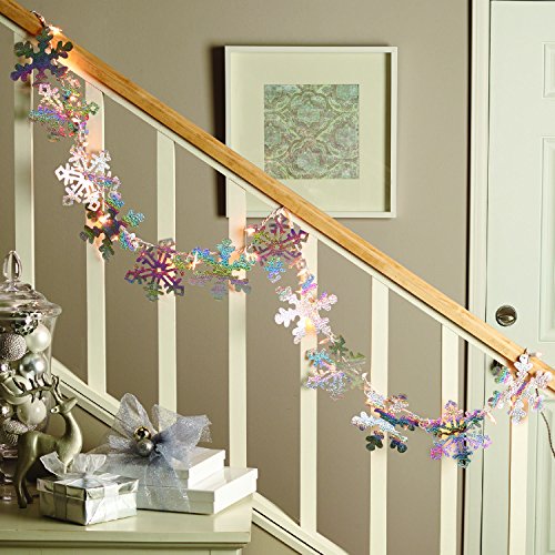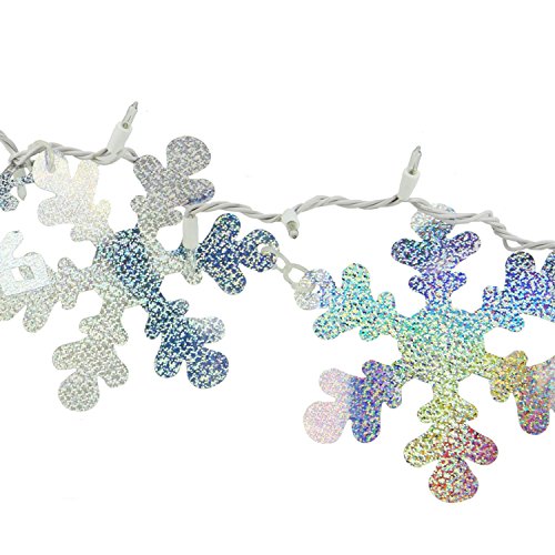Northlight Silver Holographic Snowflake Christmas Light Garland with 35 Clear Mini Lights and White Wire, 9.9'