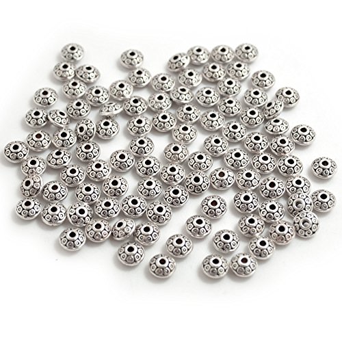 BronaGrand 100pcs 6 mm Antique Silver Spacer Beads European Style Beads for Jewelry Making