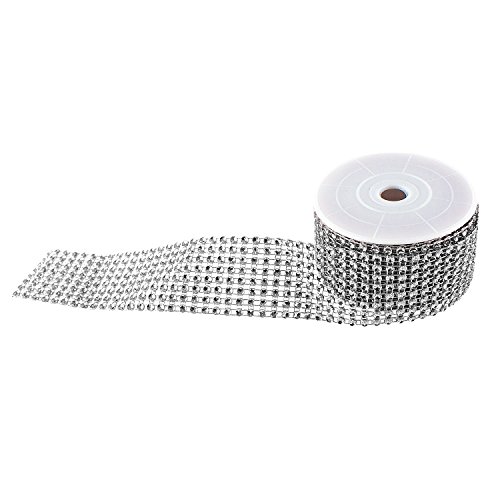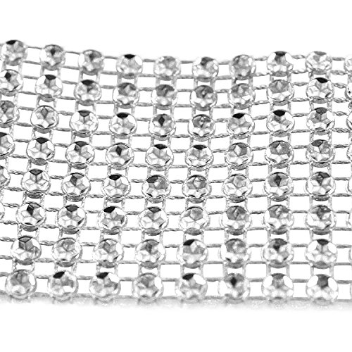 - CUSTOMIZE HOW YOU WANT - Held together by string mesh, this roll of silver rhinestone ribbon is easy to cut to the length of your choosing. 8 Row of rhinestones on mesh backing. 3 yards of 1.5" inch row of stones.