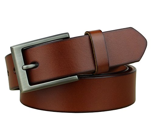 -. Feature : Leather: 1.3inch wide; Buckle: 1.7inch wide, 2.2inch long.( 1.0inch=2.54cm) / If your waist size is 34, please choose our size:32-34inch. If your waist size is 36, please choose our size:34-36inch. Size reference: belt size(inch)--full length(cm),30-32inch--100cm;32-34inch--105cm;34-36inch--110cm;36-38inch--115cm;38-40inch--120cm;40-42inch--125cm. Belt full length measuring from head to the tail of the belt strap. (not including the belt buckle) / The Buckle is fixed with screws. If it is too long, you could unscrew it and then cut the leather. / High Quality Sturdy Leather Belt. Excellent Craftsmanship, Super-comfortable to wear. / Good packaging and service.