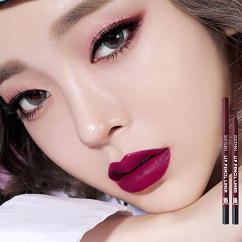 16 Brand Smooth, Longlasting, and Ultra Fine Lip Pencil Liner 7.Plum Red, 1ea, 0.017Oz