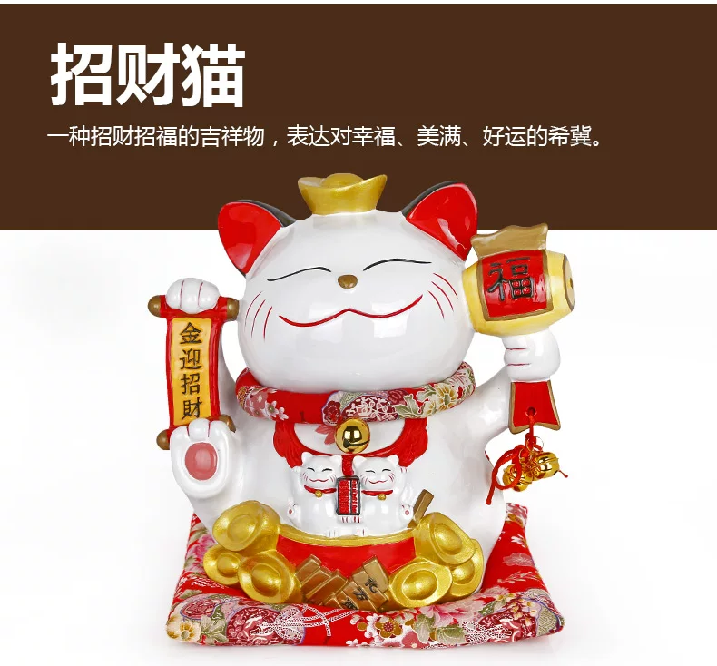 Lucky Lucky Luck Welcoming Cat is seen as a mascot, which dates back to 400 years ago in Edo. General Lucky Cat lift his left hand, said Zhao Fu; For right-hand is a symbol of Lucky; two hands held up, on behalf of the "wealth" and "blessing" with the arrival of meaning. In addition, Lucky Cat's golden bell hanging from his chest, but also lucky, Lucky, Zhao Fu, the origin of meaning. Lucky cats of different colors represent different owner wishes to express human everlasting happiness, happy, good luck hope.