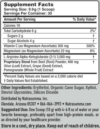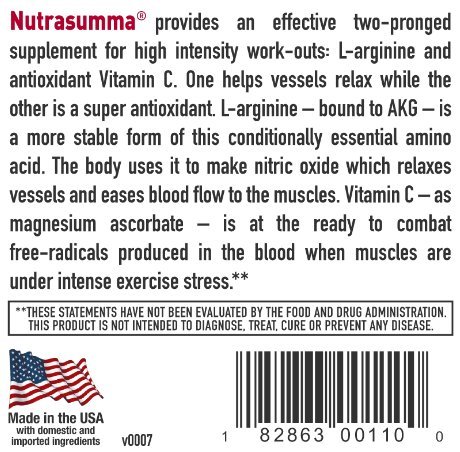 Increases Nitric Oxide Production Nutra Summa Arginine works to increase exercise production through the increase of blood flow to the heart and muscles.
