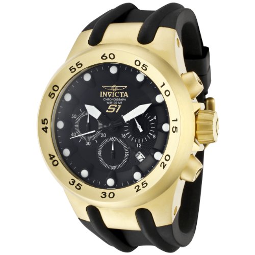 -. Binding : Watch -. Brand : Invicta -. Color : black -. Department : mens -. EAN : 0843836015097 -. Feature : Japanese quartz movement / Mineral crystal; brushed 18k gold ion-plated stainless steel case; black polyurethane strap / Chronograph functions with 60 second, 60 minute and 24 hour subdials; date function / Black dial with black and white hands, white hour markers; luminous / Water resistant to 330 feet (100 M): suitable for snorkeling, as well as swimming, but not diving -. Label : Invicta -. Manufacturer : Invicta -. Model : 1509 -. MPN : 1509 -. PackageQuantity : 1 -. PartNumber : 1509 -. ProductGroup : Watch -. ProductTypeName : WATCH -. Publisher : Invicta -. ReleaseDate : 2012-01-13 -. Studio : Invicta -. Title : Invicta Men's 1509 Specialty S1 Chronograph Black Dial Black Polyurethane Watch -. UPC : 843836015097