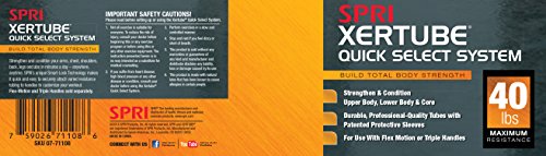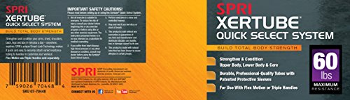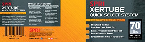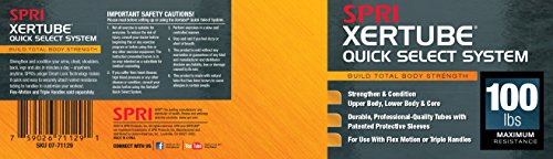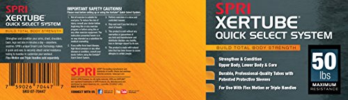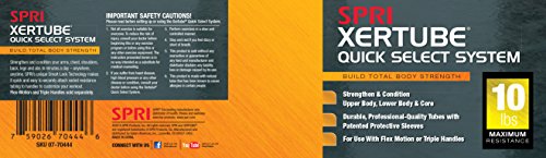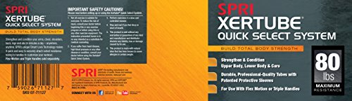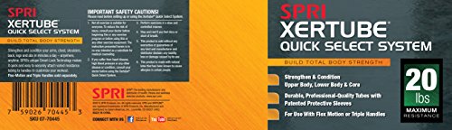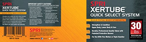 The workout tool you can use anywhere, anytime. The SPRI Quick Select Xertube is an inter-changeable resistance band system allowing the user to switch resistance bands effortlessly in three easy steps. The resistance bands/tubes are created using a "dipped process" rather than the more common and inexpensive "extruded process" ? making it one of the most durable and reliable tubes on the market. In fact, SPRI tubing is the professional’s choice and is preferred by instructors, clubs, and health club members. All SPRI rubber resistance products are made using Tuff Tube, a SPRI exclusive. This heavy-duty, high quality material has greater resistance to abrasion and tears to stand up to the rigorous demands of professional use. Laboratory tests have demonstrated the high quality and superior physical properties of SPRI tubing. The handle plug (black rubber coating on end of tube) provides extra protection and strength against tears. SPRI's Flex-Motion Handles (sold separately) featuring Smart-Lock Technology to quickly, easily and safely change resistance tubes and customize your workout in seconds. Perfect for use in strength-conditioning, Pilates, physical rehabilitation as well as today’s hottest workouts including: CrossFit, P90X, P90X2, Slimin6, Insanity, Les Mills, TurboJam, Jillian Michael’s Body Revolution and many others.