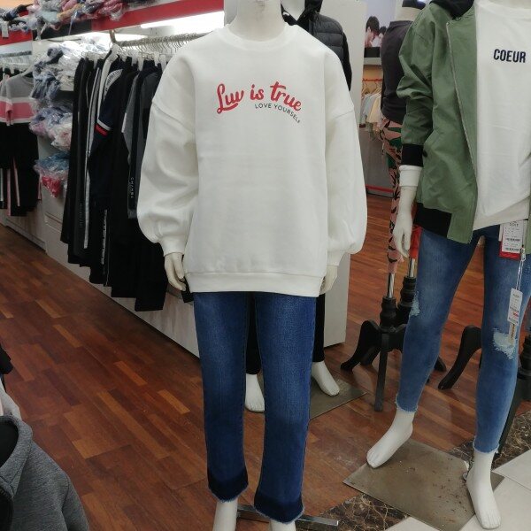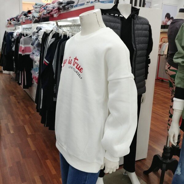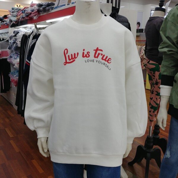 오버핏 맨투맨 여학생용 티셔츠입니다.밍크 털이 부드러운 티셔츠입니다.