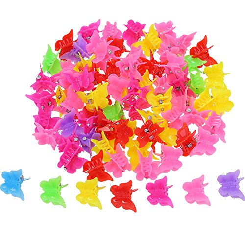 Hicarer 100 Pieces Butterfly Hair Clips Claw Barrettes, Assorted Color Mini Jaw Clip Hairpin Hair Accessories for Women and Girls