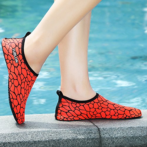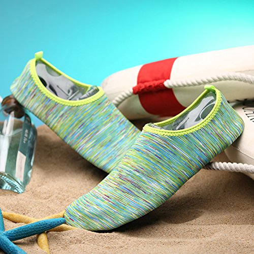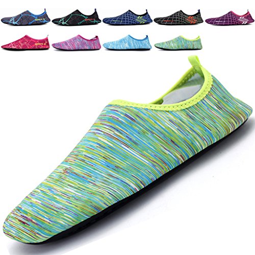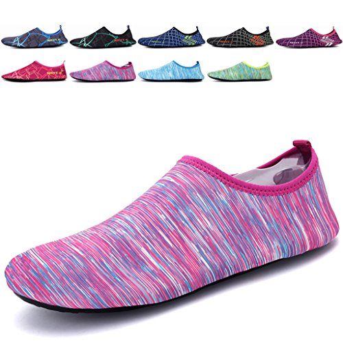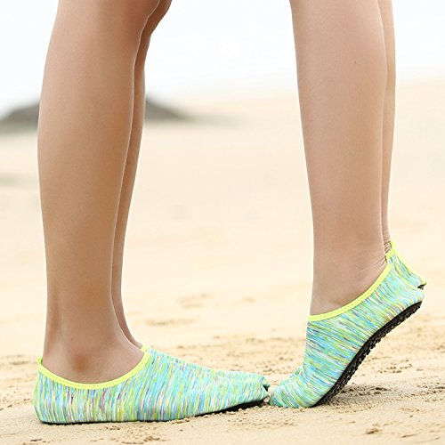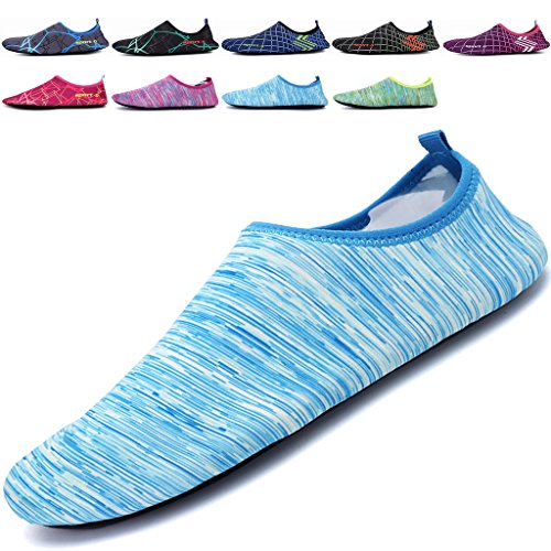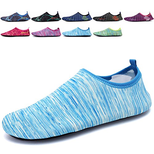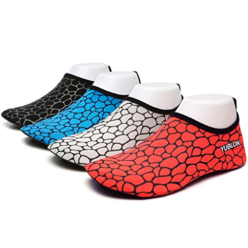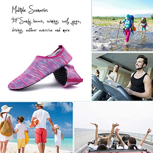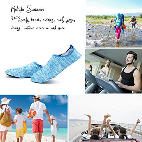 3.Water Skin Shoes Aqua socks for Everyone Men, Women, Kids, children, boys, girls, youth. Necessities in water park, surfing, beach volleyball, pilates, weight training, wake-boarding, sailing, parasailing, boating, kayaking, windsurfing, cycling jogging, walking, fishing, garden, lawn, car-washing and driving and yoga. Excellent comfortable feeling~ it is proud of comfortable fit on the foot.