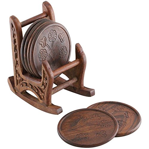 - What's in the package: 6 round handmade coasters in a wooden chair-shaped coaster holder - all rosewood.