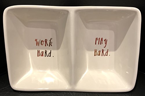 Rae Dunn Artisan Collection By Magenta Divided Tray 8” X 5” X 3” Deep WORK HARD & PLAY HARD Dishwasher Safe