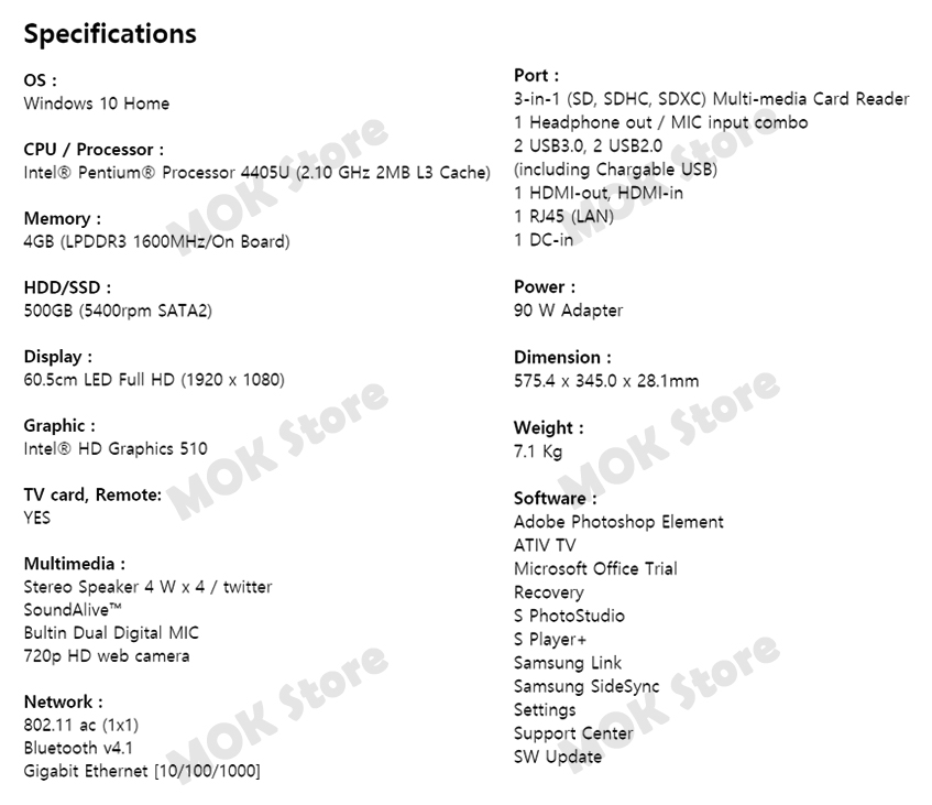 SAMSUNG All-in-One PC 7 DM700A4K-KN27