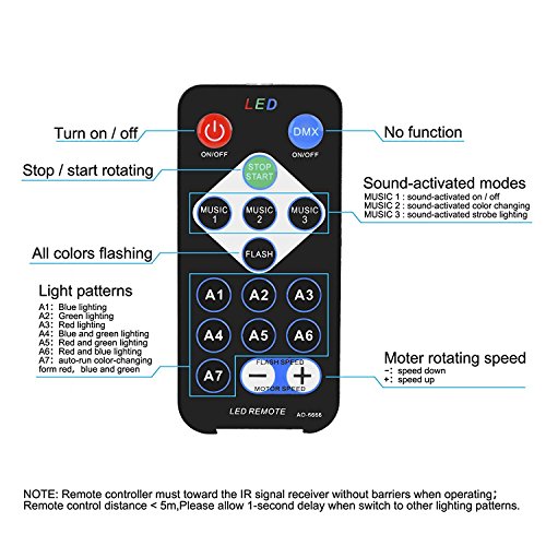 MULTI-COLOR COMBINATIONS AND OPTIONAL: Different combination of the 3 colors RGB allows you to have 7 lighting color patterns (R/G/B/BR/BG/RG/RGB). You can also choose strobe lighting and 3-mode sound activated by the remote controller.