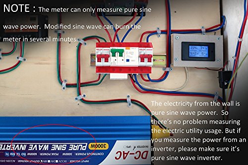 - *The meter can only measure the active power(real power). It doesn't show Apparent power. If you measure power from a DC-AC inverter please make sure it's PURE SINE WAVE. Otherwise the meter can be burnt or melted.