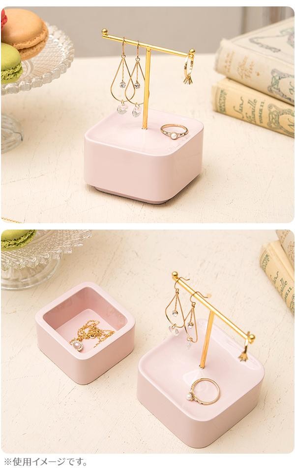 | バラバラになったり、絡まったり…何かとトラブルに見舞われがちなアクセサリーをスマートに美しく収納できるアイテムです。ゴールドとピンクの色合いが甘くなりすぎず、お部屋を華やかに飾ってくれます。 |