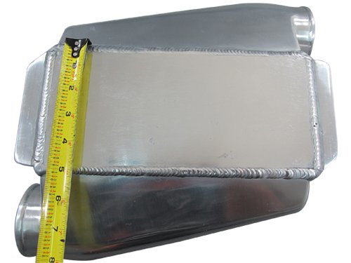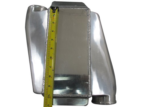 Product Description Aluminum Liquid Water to Air Intercooler.-Overall Size: 10"x11"x4.5" - Core Size: 10"x5"x4.5"- 3" Air Inlet Outlet- 0.73" Water Inlet Outlet FittingIt also has one Small Hole for Sensor Plugin (can be sealed if not used). 0