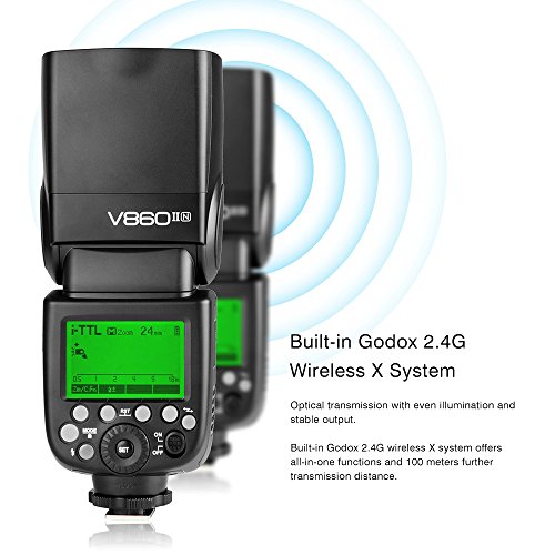V860IIN guarantees better light shooting experience with built-in Godox 2.4G wireless X system, GN60 high guide number, and 20 to 200 zoom flash coverage.