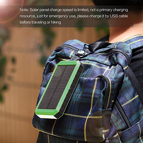 - Dual Recharging Technologies: 15,000mAh high capacity power bank is not only can be recharged by sunlight, but also by wall outlet or car charger via the DC port; Buit-in 2A Input(Max), reducing the recharging time up to 40% compared to 1A input of other power bank