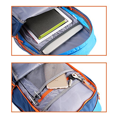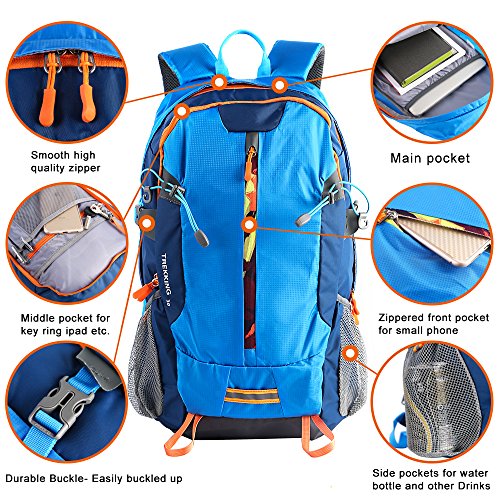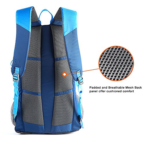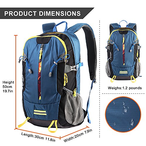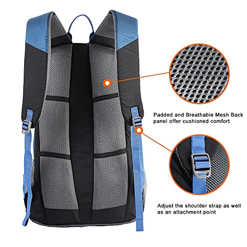 -. Feature : Durable - The backpack is made from highly rip and water resistant nylon fabric, provide strengthen and long-lasting performance with minimal weight. High quality buckle and SBS metal zipper avaliable. Integrated breathable mesh pad in the back,breathable and not my. / Multipurpose - The perfect package designPerfect for day trip, vacation, travel, day hiking, camping. / Comfortable - Experience makes the most comfortable wide breathable mesh shoulder straps / Organizer - Main pocket is Large enough to carry what you need. Outer bigger pocket great for Ipad or clothes. Outer smaller pocket great for quick access such as cellphone or Charger Baby. Waist zip pocket for Small items and two large side mesh pockets for water bottles or umbrella. / Roomy and Light - 19.7 (H)x 11.8 (L)x 7.9 (W) inches (50 x 30 x 20cm).,just weighs about 1.2 pounds.