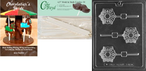 Cybrtrayd 'Snowflake Pop' Christmas Chocolate Candy Mold with 50 4.5-Inch Lollipop Sticks and Chocolatier's Guide