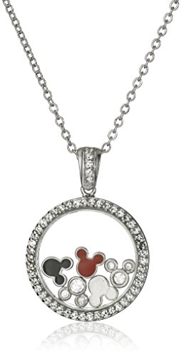 Necklace featuring cubic zirconia-studded round pendant with five floating Mickey heads at center