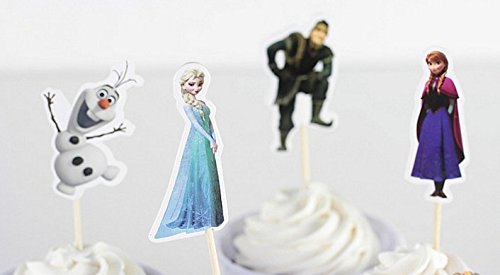 Frozen Party Cupcake Toppers Birthday Party Supplies 24pcs (6 Anna, 6 Elsa, 6 Olaf, 6 Kristoff)