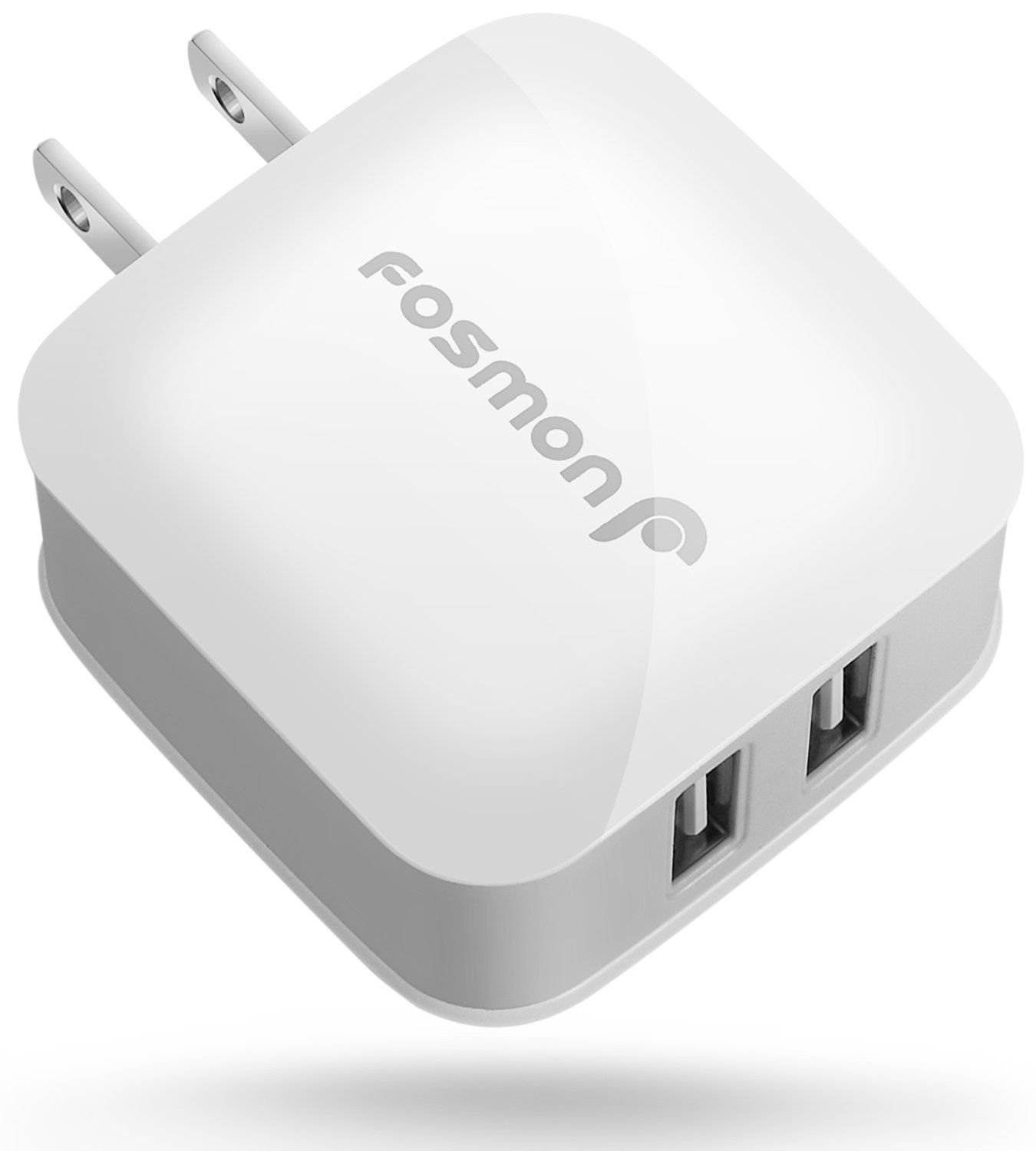 Fosmon's two-port USB wall charger charges the device at high speed.