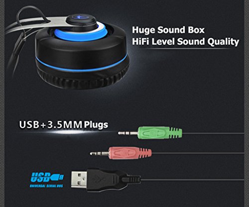 -. Feature : 40 mm driver unit outputs premium multidimensional High-Resolution audio quality / Over-ear design prevents sound leakage and unwanted noise / Headband made with stylish design, flexible and comfy / Ear Pad sponges warped by skin like leather offers around-the-ear comfort / Both ear pads equipped with eye-catching LED lighting system and vibrant system