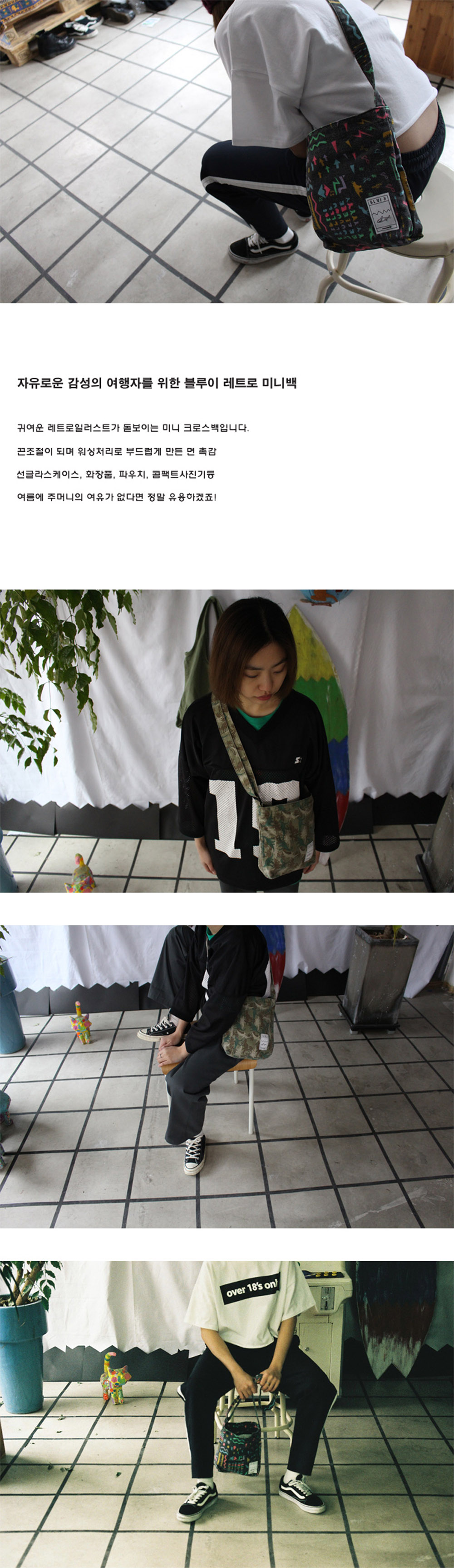 프린트가 인상적인 귀여운 크로스미니백입니다.