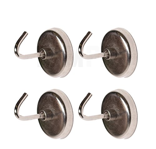 4-Piece Ram-Pro Extra-Strong Magnetic Hook Set - Holds 8 Lb Capacity, Quality Chrome Plated For Tools, Keys, Coats, Towels, Kitchen Utensils.