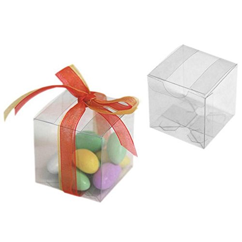 [Product Information]- 2in.x2in.x2in. sized clear acetate square gift box - sold in a pack of 20 boxes. Includes boxes only (does not include ribbons or candy).