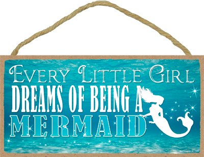 (13501) Every little girl dreams of being a mermaid 5" x 10" Wood Plaque Sign