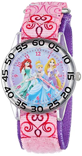 -. Binding : Watch -. Brand : Disney -. Color : Pink -. Department : girls -. EAN : 0843231074941 -. Feature : Round Time Teacher Plastic Watch with Disney's Ariel, Cinderella and Rapunzel characters on dial. / Meets or exceeds all US Govt requirements and regulations for Children's watches. / Recommended for Ages 3-7 years old. Includes a Time Teacher Punch Out clock for Parents to Teach their Children. / Accurate Japanese Quartz movement, scratch resistant mineral crystal, hook and loop Nylon strap / Water Resistant to 99 feet: withstands rain and splashes of water, but not showering or submersion. / 1 Year Limited Manufacturers Warranty -. Label : Disney -. Manufacturer : Disney -. Model : W001192 -. MPN : W001192 -. PackageQuantity : 1 -. PartNumber : W001192 -. ProductGroup : Watch -. ProductTypeName : WATCH -. Publisher : Disney -. ReleaseDate : 2013-12-30 -. Studio : Disney -. Title : Disney Kids' W001192 Time Teacher P.R.Incess Watch with Pink Nylon Band -. UPC : 843231074941