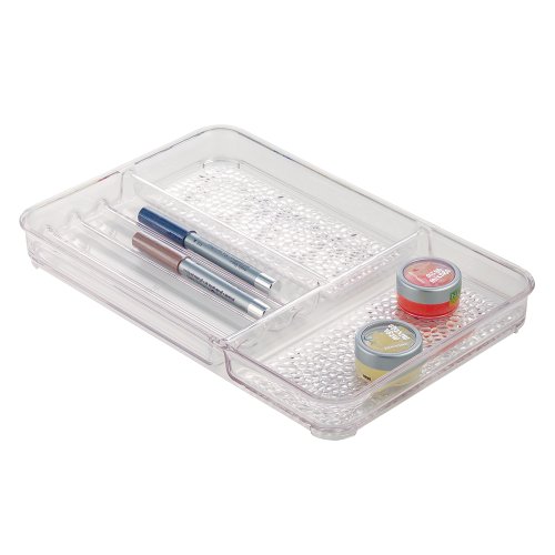 Studio : InterDesign Publisher : InterDesign Binding : Kitchen Product Description The final touch in getting organized. Use this wonderful Rain finishing tray to help you complete the task. This medium drawer organizer is made from strong, high quality resipreme and has three compartments to help separate and organize. The textured bottom helps keep the organizer from shifting when opening and closing drawers. 0