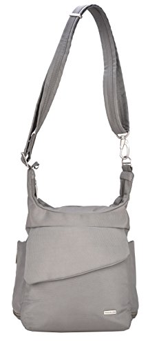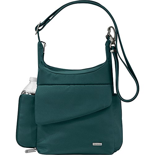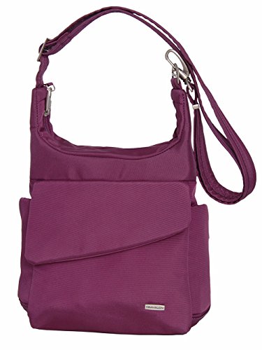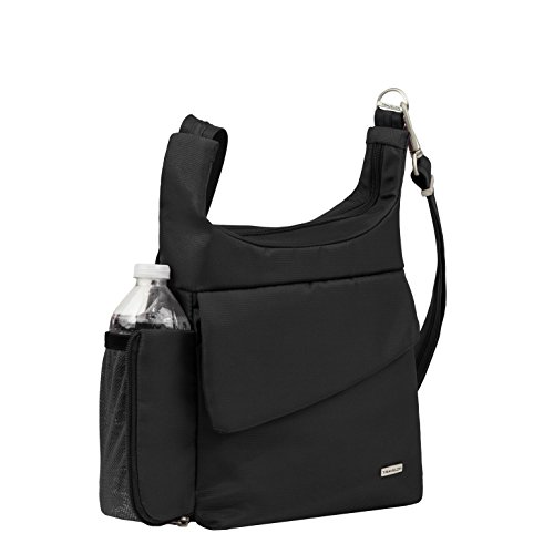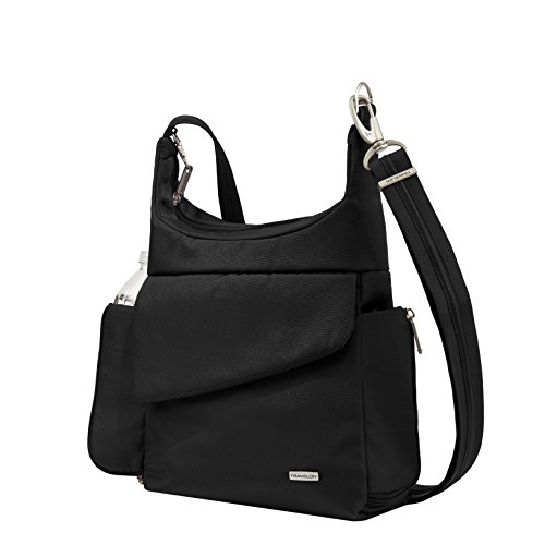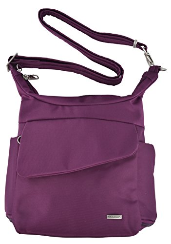 Protect your belongings from pickpockets and slash-and-grab thieves with the Anti-theft Travel Bag from Travelon. Featuring hidden, slash-proof, Chain Link construction and an adjustable, cable-reinforced, cut-proof shoulder strap. The roomy main compartment features a locking zipper and pockets for organization. The rear organizer includes slots for credit cards, and pockets for travel documents. The zippered expansion pocket holds a camera, water bottle, or sunglasses. For more than 35 years, Travelon has been making travel easier and safer with products that provide protection, peace-of-mind, safety, security and organization. Travelon's Anti-Theft Cross body and travel bags protect from pickpockets and thieves and are customer top rated. Classic silhouettes in soft fabrics provide great function and fashion.Feature