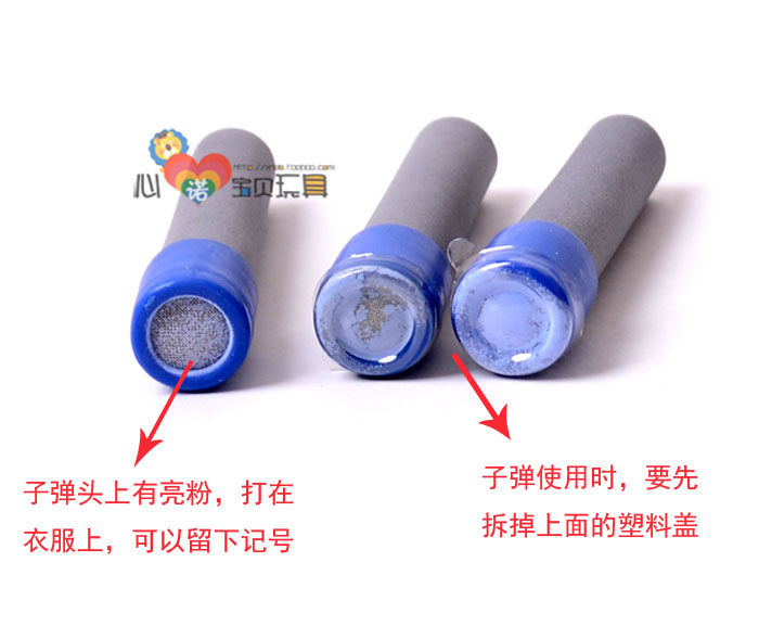 Description: Cool double battle toy gun, set includes 2 guns, 2 pair of goggles, a target, a total of 6 bullets! This gun is characterized in that the bullet mark function, namely chalk dust technology, the front end with powder, playing in the dark clothes can leave mark, after use can also add their own chalk! Method of use the gun, pull the gun at the top of the poleloaded, pull the end after the pole to restore in situ, pull the trigger can be fired the gun, the front has 6 storage location of the bullet! The set also included a paper target, single contact aiming at the target, but also can double game, see who shot, the score is high, the boys and my father lovedshooting game!