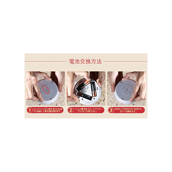 전지 교환건전지식 전원 공급.좌회전으로 뚜껑을 여는 것 뿐(만,만큼),3-AAA전지를 교환으로 옵니다.(전지 별매)