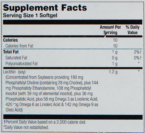 Lecithin, derived naturally from soybeans, provides choline, inositol, especially fatty acids and phospholipids for healthy nerve and brain function. Lecithin also helps support the liver's ability to metabolize fats and normal cellular membrane composition.Feature