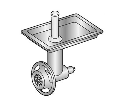 -. Feature : Comes complete with a Stainless Steel Pan / Stomper, 1/4†Plate, Knife, Cylinder Ring & Worm also included / Alfaâ€TMs #12 Plates and Knives will also fit this attachment / These attachments fit Hobart, Univex, Toastmaster and compatible Mixers, Grinders, Food Cutters and Power Units with Hobart style size #12 Power Hub