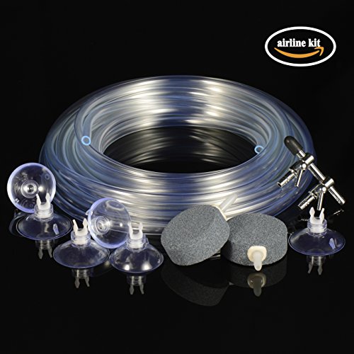 Aquarium Air Pump Accessories include 26-FT 3/16-inch Plastic Airline Tubing,1-Pcs 2-Way Outlet Air Flow Control Valve,2-Pcs Air Stones and 6-Pcs Suction Cup Holders for Fish Tank