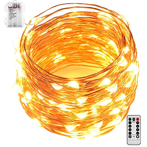 GardenDecor Led String Lights 100 Leds Waterproof Decorative Fairy Battery Powered String Lights with Remote and Timer, Copper Wire light for Bedroom,Wedding(33ft/10m Warm White)