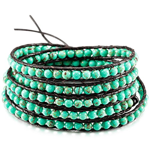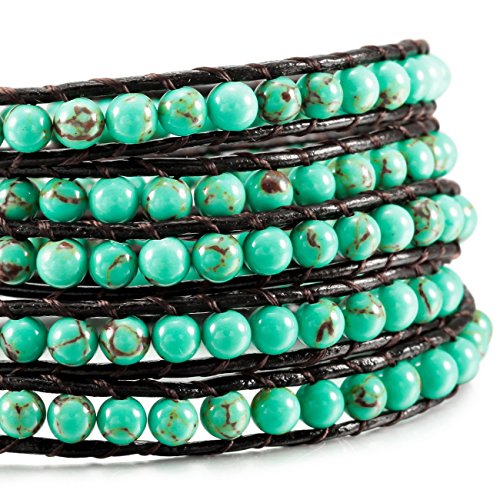 -. Title : MOWOM Alloy Genuine Leather Bracelet Bangle Cuff Simulated Stone Rope Bead 5 Wrap Adjustable