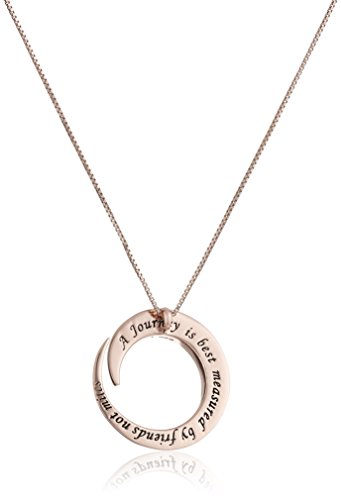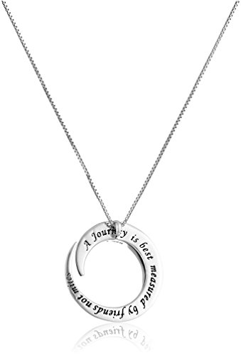 -. Binding : Jewelry -. Brand : Amazon Collection -. Color : Gold -. Department : women -. Feature : Box-chain necklace with engraved pendant / Inscription: "A Journey is best measured by friends not miles" / Spring-ring clasp / Imported -. Label : LA Rocks -. Manufacturer : LA Rocks -. Model : 427985G-Parent -. MPN : 427985G-Parent -. PartNumber : 427985G-Parent -. ProductGroup : Jewelry -. ProductTypeName : FINENECKLACEBRACELETANKLET -. Publisher : LA Rocks -. Studio : LA Rocks -. Title : Sterling Silver "A Journey Is Best Measure By Friends Not Miles" Circle Pendant Necklace, 18"