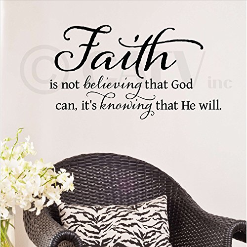Faith Is Not Believing That God Can It's Knowing That He Will vinyl lettering decal home decor wall art saying (Black, 16.5x30)