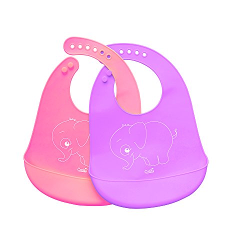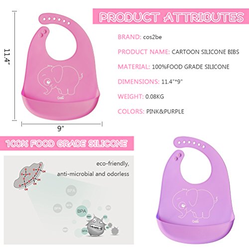 Cos2be Waterproof Silicone Unisex bib , Resistant Soft Baby Bibs with Snaps Ultra-soft Cute Funny Feeding Bibs for baby or toddlers! Comfortable & Keep Stains Off .Easily Wipes Clean(pink/purple)