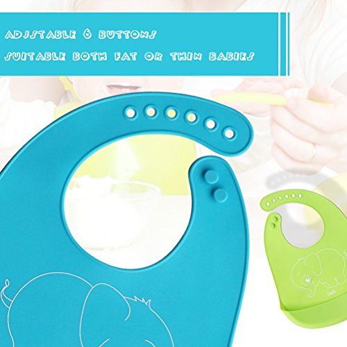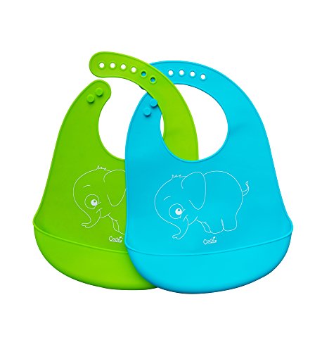 Cos2be Waterproof Silicone Unisex Bibs with Snaps Ultra-soft Cute Funny Feeding Bibs for Girls Boys! Keep Stains Off Easily Wipes Clean! Set of 2 Colors (blue/green)