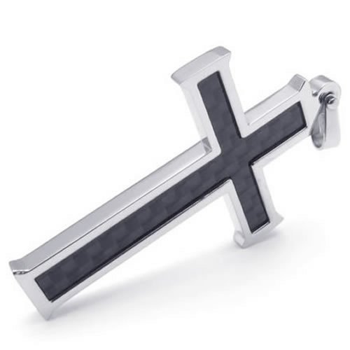 -. Title : KONOV Carbon Fiber Stainless Steel Mens Cross Necklace Pendant, Black Silver, 24 inch Chain