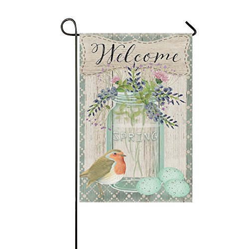 llyaon.iao Springtime Welcome Floral Garden Flag Bird Eggs Mason Jar-Best for Party Yard and Home Outdoor Decor 12x18in